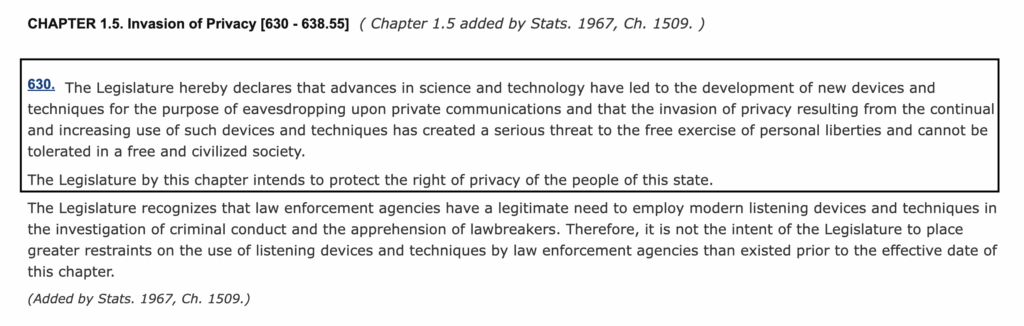California lawmakers introduced strong consent-based protections in response to the use of these technologies for secretly intercepting or recording private communications.