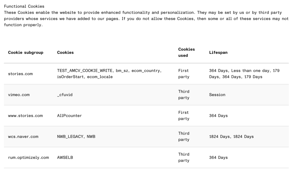 - Group cookies into categories and note their purposes and lifespan, including benefits for the user.
