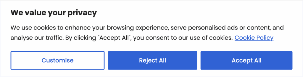 - Customisable consent banners: Match your brand style, offer granular choices, and link to your policies in a user-friendly way.